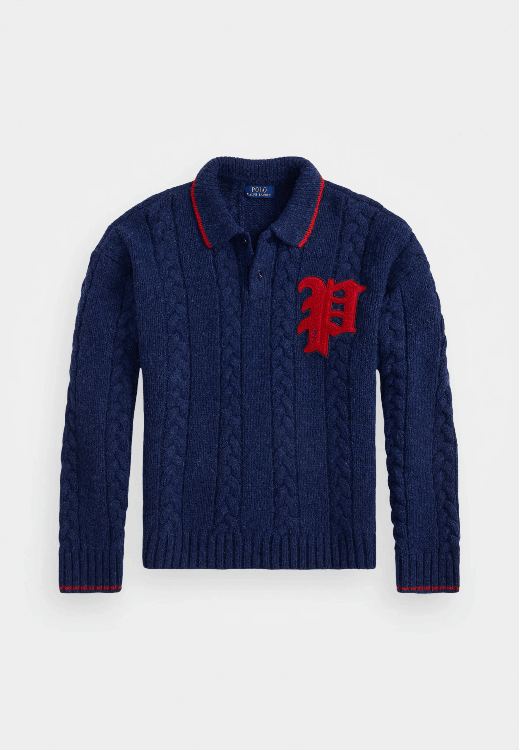 POLO RALPH LAUREN Cable-Knit Polo-Collar Letter Sweater Navy